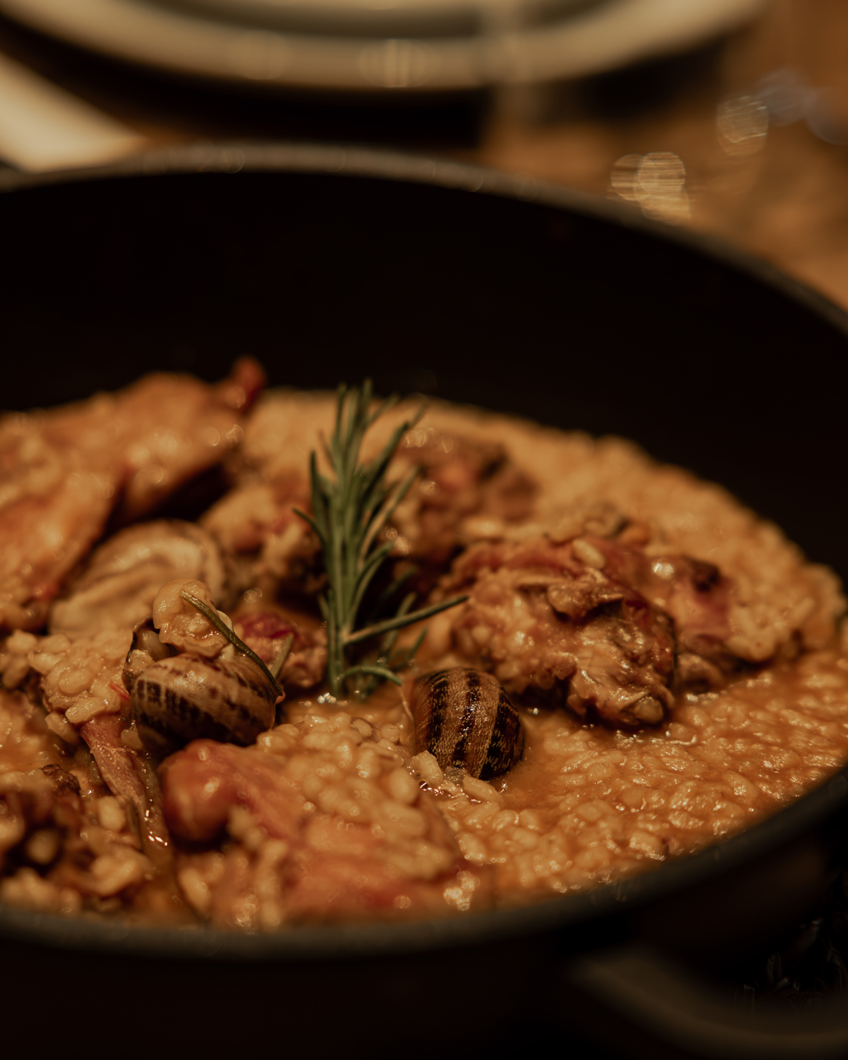 La carta sigue ese equilibrio que tan bien manejan entre el mar, el producto y la brasa. Aquí el toque pirenaico aparece en platos como la Lechuga viva con perdiz, piñones y tomate seco, las Croquetas de buey con alioli de piquillo y ajo negro o un Arroz de montaña meloso con conejo y caracoles que pide cucharón.