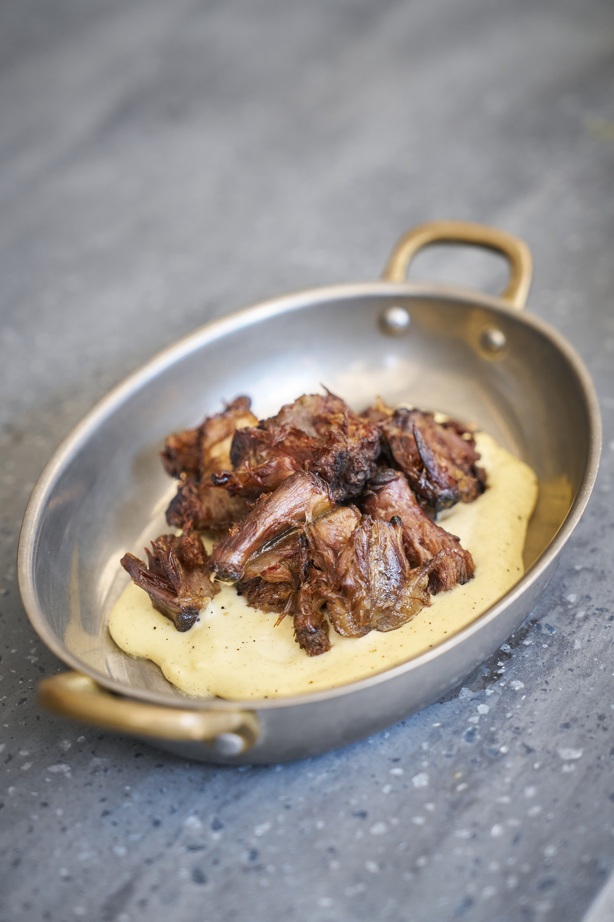 La propuesta, ideada por Johanna Müller-Klingspor junto a Estribo (la marca de catering y eventos de Ucalsa), tiene cocina ininterrumpida —bendición— y una carta que homenajea a Madrid, a sus clásicos y a nuestra despensa de toda la vida, con un twist contemporáneo. ¿Un ejemplo? Su sección Madrid en un plato, un recorrido en seis tapas por los greatest hits capitalinos: bocata de calamares, callos a la madrileña, bravas… y sí, todo se puede pedir junto.